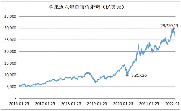 苹果近六年总市值走势(亿美元)