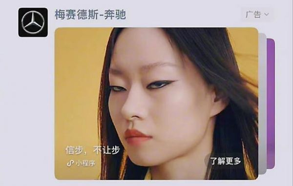 对此,有网友表示:“我这辈子都没在现实生活中见过这么多眯眯眼,在奔驰的广告中全看到了。”