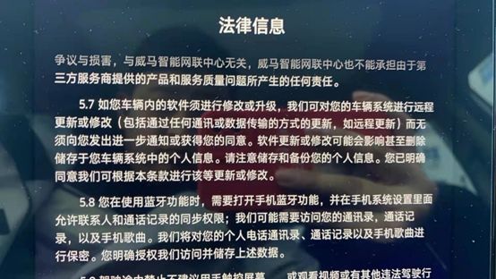 而最新一次OTA升级过后,威马车机内还多了一项不弹窗的隐形条款: