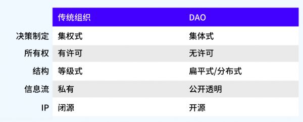纵观所有DAO,仍然可以通过几个方面将它们与传统组织区别开来。当然,这些都是概述,因此,具体情况可能存在差别。