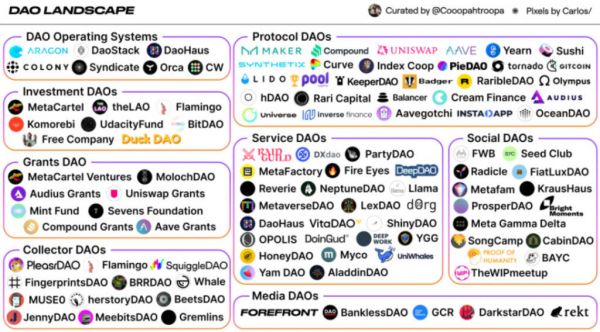 下图是投资人库珀·特利(Cooper Turley)制作的DAO现状概览图。