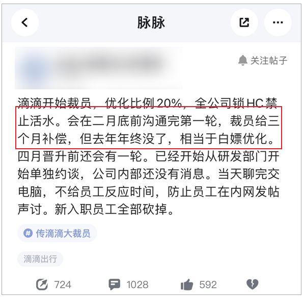 近日,滴滴裁员的消息登榜“职场社区”脉脉热榜第一,话题热度 1041w,引发无数职场人士讨论。