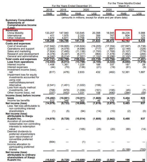 2021 年第 1 季度,滴滴的中国出行业务、国际业务和其他业务分别获得 392 亿元、8.04 亿元、21 亿元营收。