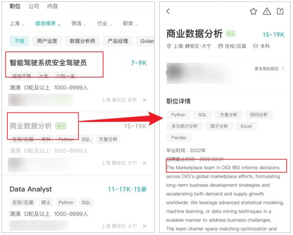 招聘网站上显示,目前滴滴国际化部门“市场团队”已经开启春招,预计招聘截止时间为 4 月 1 日。