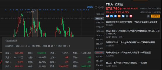 就在捐赠前半月的11月4日,特斯拉股价刷新了1243.49美元的历史新高,而报告期内的股价同样位于1062.00-1201.95美元的高位区间。