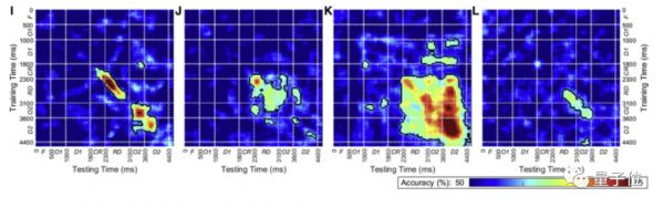 每两次显示中间有800毫秒的延迟;每个主体总共有320个试验组成,并分成4组。前10次试验视作排练,不计入之后的分析中。