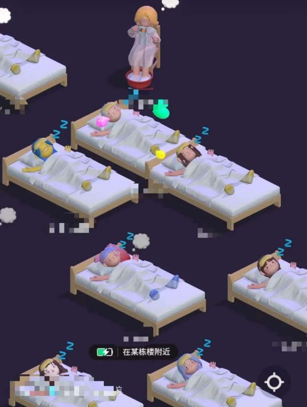 夜间在好友广场睡觉中的用户 注意上方有用户在泡脚