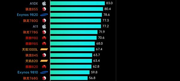 厂商公布的数据只是一方面,根据GeekBench 5的CPU跑分数据库显示,最近上传的iPhone 8的CPU分数为单核920、多核2350左右,而Redmi Note 9 Pro搭载的骁龙750G成绩为单核560、多核为1690左右。在网站SOCPK中的“移动端芯片综合性能排名”中,A11的成绩要高于骁龙778G和天玑1000L,可以说即使是在今天,A11的综合性能仍比许多发布更晚的SoC要强。