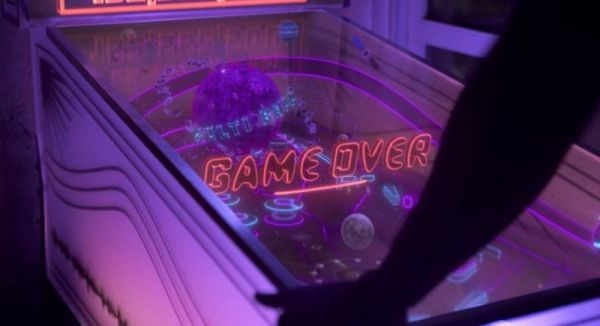 除了 VR 之外,《Striking Vipers》也描绘了未来的折叠屏手机以及一台“全息投影弹球机”。其中折叠屏手机是纵向折叠,不同于现实中三星和华为的横向折叠方案,更像翻盖机的交互。至于那台全息投影弹球机,就纯粹只是一种复古趣味的致敬了。