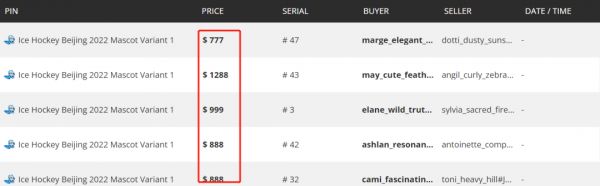 目前,已经发售的上一款冰墩墩数字产品,在二次交易时出现了大幅度的价格暴涨。以涨幅较大的北欧联合北京2022吉祥物别针为例,原价99美元的产品,目前最低报价已达2000美元,最高报价88888美元,暴涨了近1000倍。