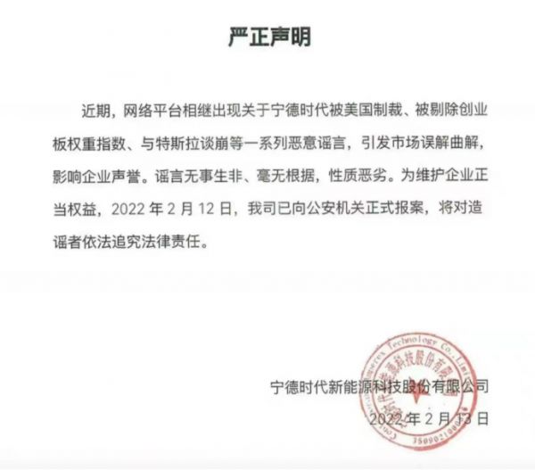 随着13日宁德时代的报警声明以及当天特斯拉有关负责人对记者的回应,所谓“谈崩”已经可以明确确认为“不实消息”。
