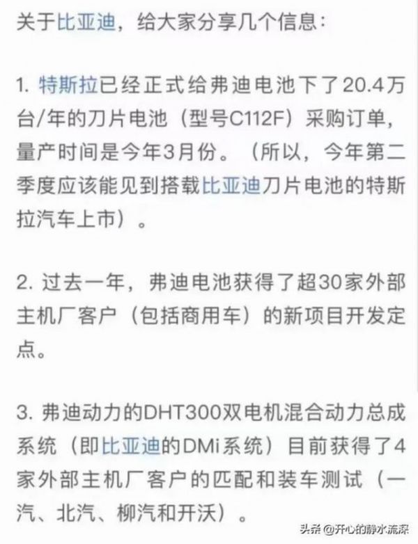 但13日晚另一条传闻则同时开始发酵,某网友发表截图称:“特斯拉已经正式给弗迪电池下了20.4万台/年的刀片电池(型号C112F)采购订单,量产时间是今年3月份。”