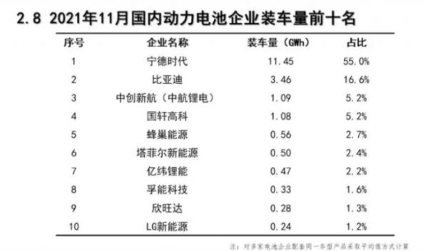 数据显示,2021年宁德时代的装机量依然在全行业占52%,比亚迪占16%、中航锂电占6%、国轩高科占5%、LG占4%、蜂巢能源占2%,其他52家电池企业共计占15%。