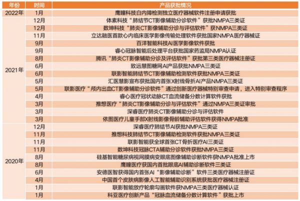 AI医学影像产品三类证获批情况图表 数据来源:动脉橙数据库