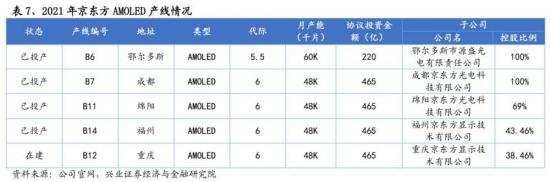 2020年,中国AMOLED面板在全球的市占率是13.2%,根据兴业证券研报数据,全球范围内有25条OLED生产线投产。其中京东方规划中的AMOLED产线共计5条,4条已经建成投产,仍有一条在建,规划总产能为252K/月。OPPO Find N外屏供应商就是京东方,内屏则是三星。