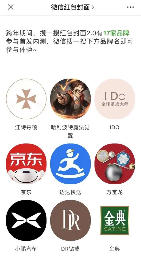 据微信搜一搜助手此前发布数据,2021年12月24日至27日“红包封面2.0内测”中,17家品牌通过搜一搜品牌官方区发出226万个红包封面,品牌流量活动期间日均周环比提升188倍,活动7天后日均流量仍提升26倍。
