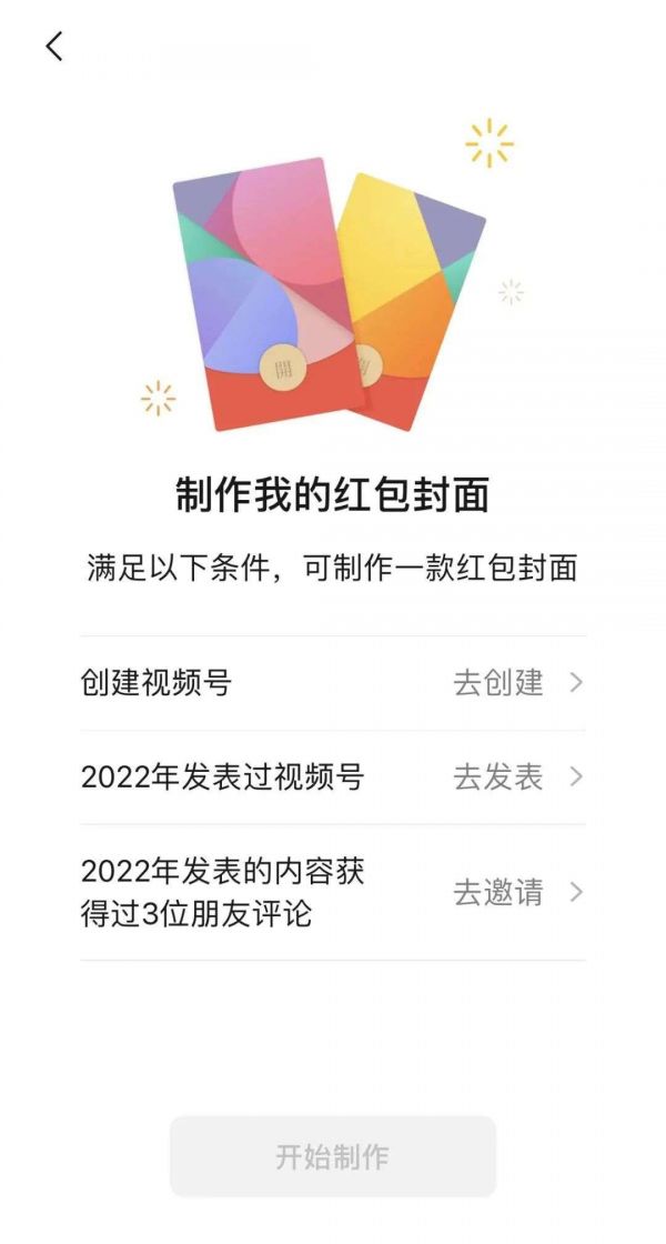 微信官方此前宣布,今年的个人定制红包封面只需三个条件:拥有视频号;2022年发布至少一个视频;视频至少获得三人评论。满足三者,即可免费定制10个红包封面。此外,当前微信红包封面开放平台显示,个人注册发放红包封面仅需开通视频号且拥有100粉丝基础,相比去年春节的“1000粉丝基础”要求大幅降低。