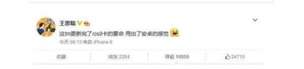 当时还在读书的小雷,在网上冲浪时就注意到王思聪发微博吐槽iPhone 6更新完iOS 9“卡的要命”。要知道iPhone 6系列出厂预装的是iOS 8,通常情况下iPhone更一两个大版本系统并不会卡,其中的原因主要出在系统、A8芯片和1GB RAM上。
