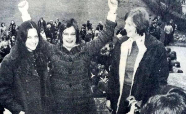 在中学时,特蕾莎·梅(右)作为保守党代表人,在一次模拟大选中败给希克斯-格林(中)。(图片来源:Oxford Times)