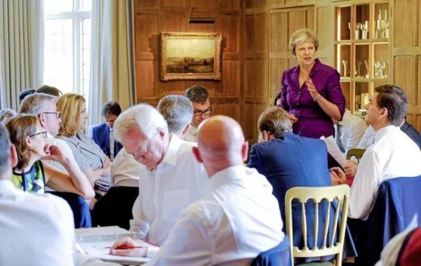 愈演愈烈的反对声音下,梅展现强硬态度。2018年7月6日,梅邀请包括约翰逊在内的内阁成员前往距离伦敦一小时车程的契克斯乡间别墅。那天,被锁在别墅内的内阁成员们只有两个选项:同意梅的十二点脱欧方针,或是不同意而直接请辞,并且立即放弃自己的部长级轿车,打车或和BBC记者拼车回家。