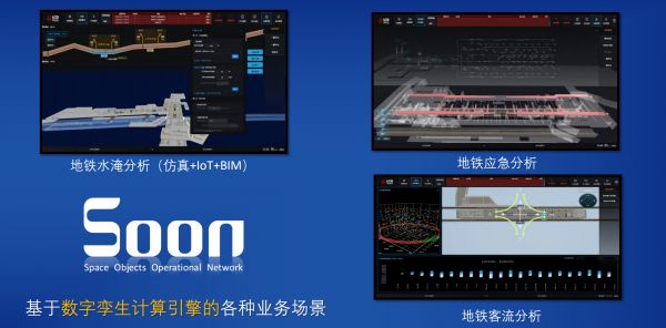 据团队测算,对于模型精度LOD300、2万平方米的地铁站,通过AI自动识别+设备云构件库,可在24小时内完成建模,解析的模型存储体积也仅有一张图片大小。SoonManager平台的算法库SoonCCS数据分析引擎可以提供几十种计算算法,如水淹分析,客流分析,导航计算分析等。