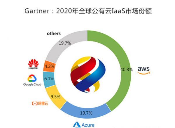 而在另一家市场研究机构Gartner的数据口径下,2020全球IaaS市场,华为云以4.2%市场份额跻身全球前五,超过腾讯云。
