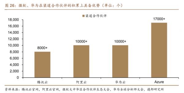 由于在主营业务上经营时间较长,积累的客户资源较为丰富,尤其是大型客户,因此Azure、华为云在企业用户资源上具备优势,而这正是阿里云、腾讯云等云厂商苦苦苛求的。