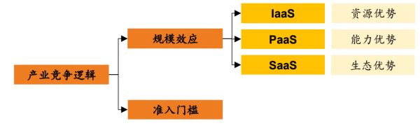 已知云计算按照服务划分主要分为IaaS、PaaS、SaaS三个层面,在IaaS层,由于同质化强,竞争关键在于资源优势。