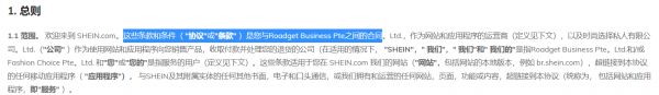 变化的迹象最先发生在「SHEIN」领英页面上,其公司简介已更改新加坡为总部。而「SHEIN」网站的法律条款页面也显示,一家名为「Roadget Business Pte. LTD.」的新加坡公司已经是「SHEIN」 APP和网站的运营主体,面向消费者销售产品。