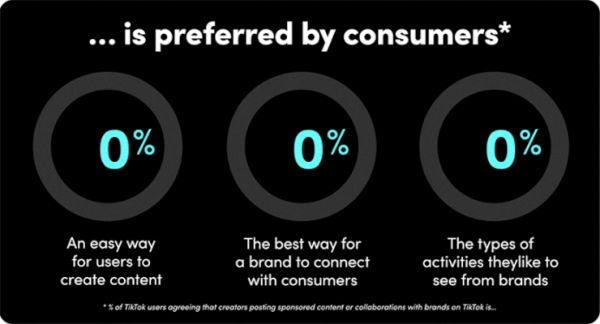 Mindlab 的第三方研究(2021年6-7月在EU5市场(英国、法国、德国、ES、IT)进行了5,000次在线采访。在模拟TikTok应用程序中测试了17种不同的刺激(视频广告))显示,TikTok用户更为偏好与创作者合作的品牌广告活动。