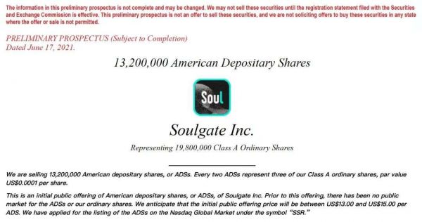 去年6月18日,Soul曾更新招股书,将发行价区间设定在每股美国存托股票13美元至15美元之间,此次赴美上市拟发行1320万股,以发行价计算,Soul估值近20亿美元,约合人民币130亿元。