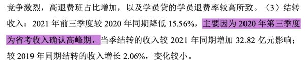 即2020年第三季度,预收款也高,结转收入也高。这不符合原本的规律。我们来看中公教育是怎么解释的: