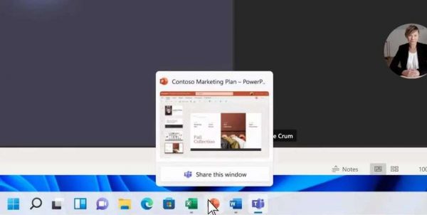 办公方面则引入了窗口分享和静音按键功能,目前窗口分享功能仅支持微软自家的 Teams 会议应用,点击后就可以将 PPT 内容直接以窗口的形式分享,同时任务栏的音量按键可交互,点击之后直接关系麦克风。