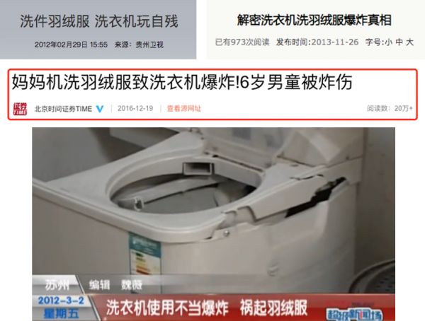 这不是羽绒服第一次“爆炸”了……近十年每年都会有羽绒服在洗衣机里爆炸的新闻。