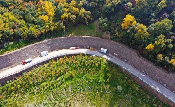 由于山势高低起伏,无法使用大型机械,建设者们只能用人工方式开挖,将表土挖出后分割成 400mm 见方的土块,再把它们卷起、编号,存放于地势较高的位置;待到场馆建设完成后,再将表土资源全部回用,实现了原土、原地、原样回填。2017 年 3 月 至 2018 年 4月,仅延庆赛区就有 81848 立方米表土得以保留。