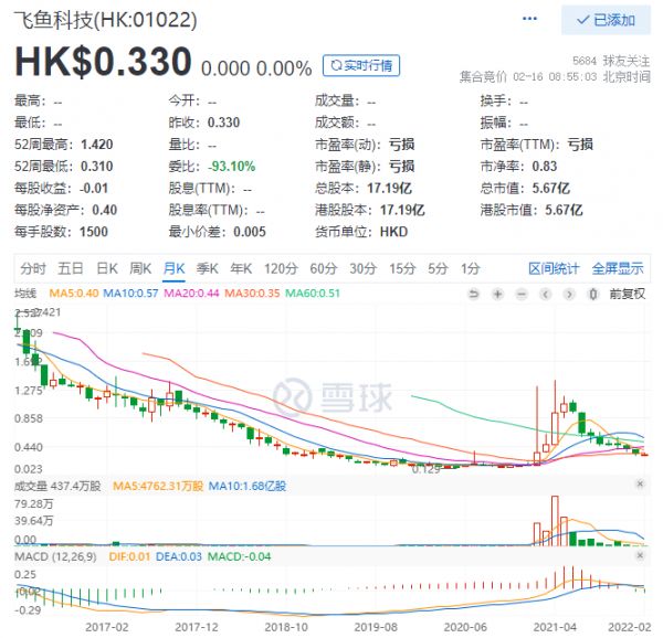 股价也不出所料地一路下跌,直到2021年腾讯入股才拉了飞鱼科技一把。