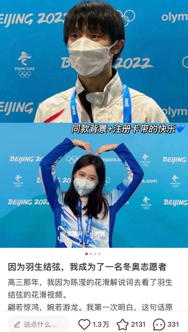 她在小红书晒出的这段经历,被超过1万人点赞。虽然最终她没有被分派在花滑场馆,也没有见到羽生,但欣喜地告诉 娱刺儿(ID:yuci-er) ,自己实现了冰墩墩自由。