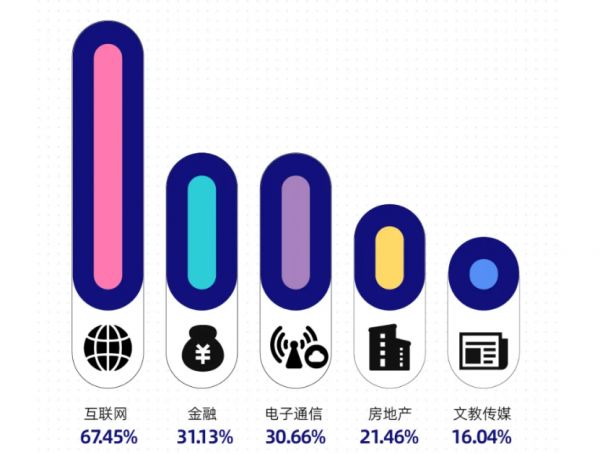 据某招聘网站的数据调查,在所有行业中,互联网从业者的35+危机位居所有行业之首,得票率高达67%,金融行业以31%的得票率位居第二,电子通信行业以30%的得票率排在第三,房地产和文教传媒行业也以较高得票率进入前五。