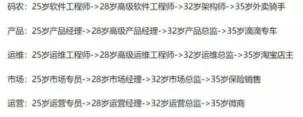 在互联网行业流传着这样的段子:被优化的35岁程序员做了外卖骑手,产品经理转行去开滴滴专车,运维无奈改行当了淘宝店主,市场人员失业后卖起了保险,运营人员则靠做微商糊口。