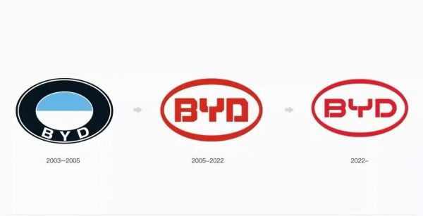 2021年开始,比亚迪汽车发布了品牌的全新标识,椭圆形边界直接被取消,也打开了封闭空间,看起来更开放,并且新标整体看上去更加动感。自2007年从蓝天白云变到BYD三个字母标,到现在的新logo,也能隐藏着企业的成长与变迁。