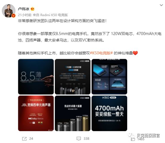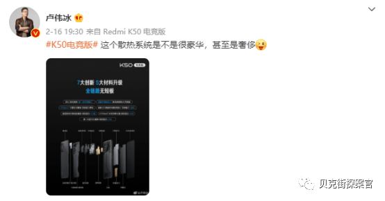 我实在是不理解,为什么在华为经历芯片封锁之后,小米依旧将“生产好芯片”的愿望寄托于海外大厂?同时在其个人社交媒体上,卢伟冰以散热为宣传重点,感谢团队在外观设计以及外设产品上的努力,并感谢广大用户对产品的“热爱”。