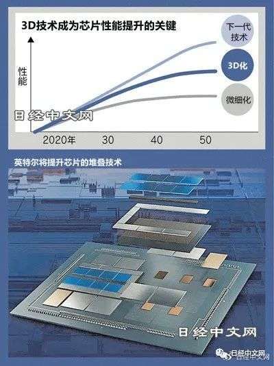 世界半导体大型企业英特尔和台积电(TSMC)等的尖端开发的情况正在改变。仅凭缩小电路线宽、提高集成度的“微细化”已不能跟上性能提高的需求,日趋需要新技术。各企业竞相开发的是将多个芯片堆叠起来,提高性能的三维(3D)技术。在半导体技术的新主角亮相的背景下,日本的设备和材料企业也在迎来商机。