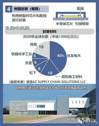 而在材料领域,日本企业的市场份额也很高。从用于尖端封装的再布线层的形成等的光刻胶来看,JSR和东京应化工业这2家企业掌握全球份额的6成以上。调查公司GlobalNet的董事长武野泰彦表示,“降低投资成本、提高性能的后工序的受关注度将提高”。