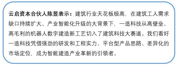 36氪获悉,建筑智能与数字建造技术服务商「一造科技」近期完成千万美元级天使轮融资,由云启资本独家投资,青桐资本担任独家财务顾问,本轮资金将主要用于软硬件研发、营销拓展和团队升级等事务。