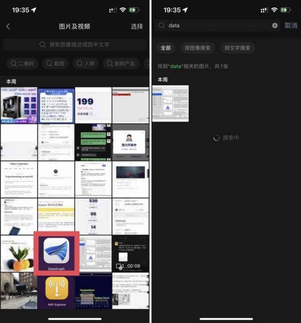 左下角的图片中,本身就有 data 的字符,而且是最近的图片,微信却搜索不出来