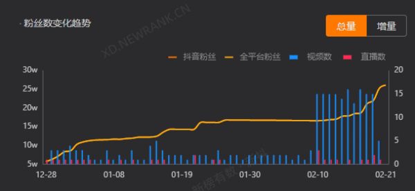 据新抖数据显示,自2021年12月28日新东方“东方甄选”开始带货以来,截至2月20日,该品牌带货直播30次,累计观看人次401.71万,累计直播销售额549.47万;场均在线人数1214、场均直播时长4.52小时;场均销量3675件、场均销售额18.32万;总上架商品数367个。
