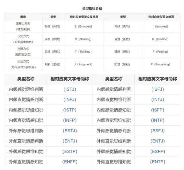 MBTI测试中的16型人格,来源 / 百度百科