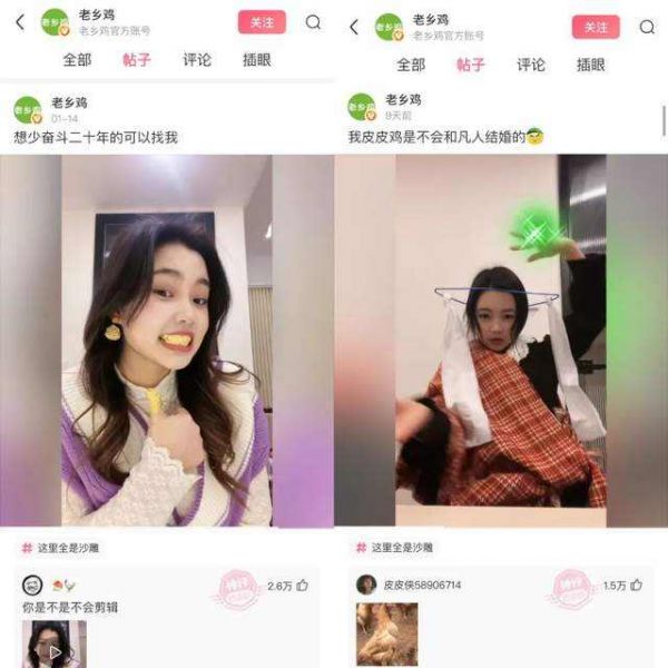 皮皮鸡则是“搞笑女”,用金箔纸给自己做金耳环、镶金牙,用瓜子壳当美甲,分享自己的沙雕日常。