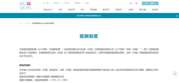 根据公开资料显示,加入如新之后要参加行为准则、产品知识、德商、领导力等繁多培训才能成为直销员。根据如新官网显示,在申请人正式成为如新(中国)直销员后,如新(中国)将按直销员直接向消费者销售产品的收入的一定比例向直销员按月支付报酬。报酬的计算方式如下:直销员所得报酬=报酬计算基数×报酬提取比例;报酬计算基数= 直销员销售额÷(17%+1)×90%。