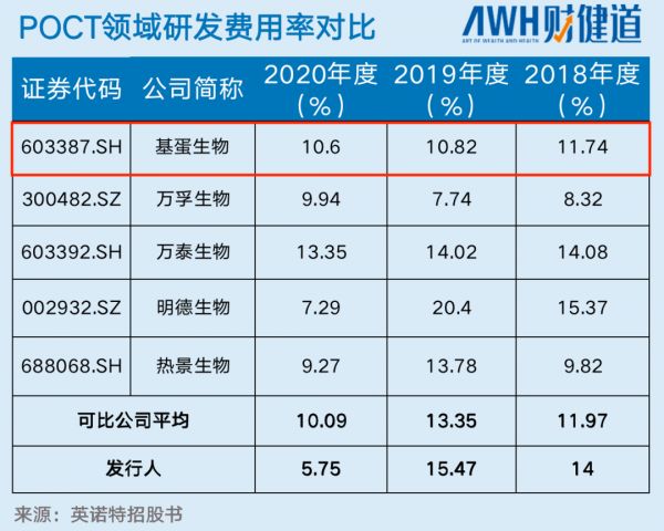 2018-2020年,英诺特的研发费率并不占据绝对优势,相比来说,基蛋生物 (603387.SH) 的研发费率更具有稳定性,3年研发费用率基本持平。